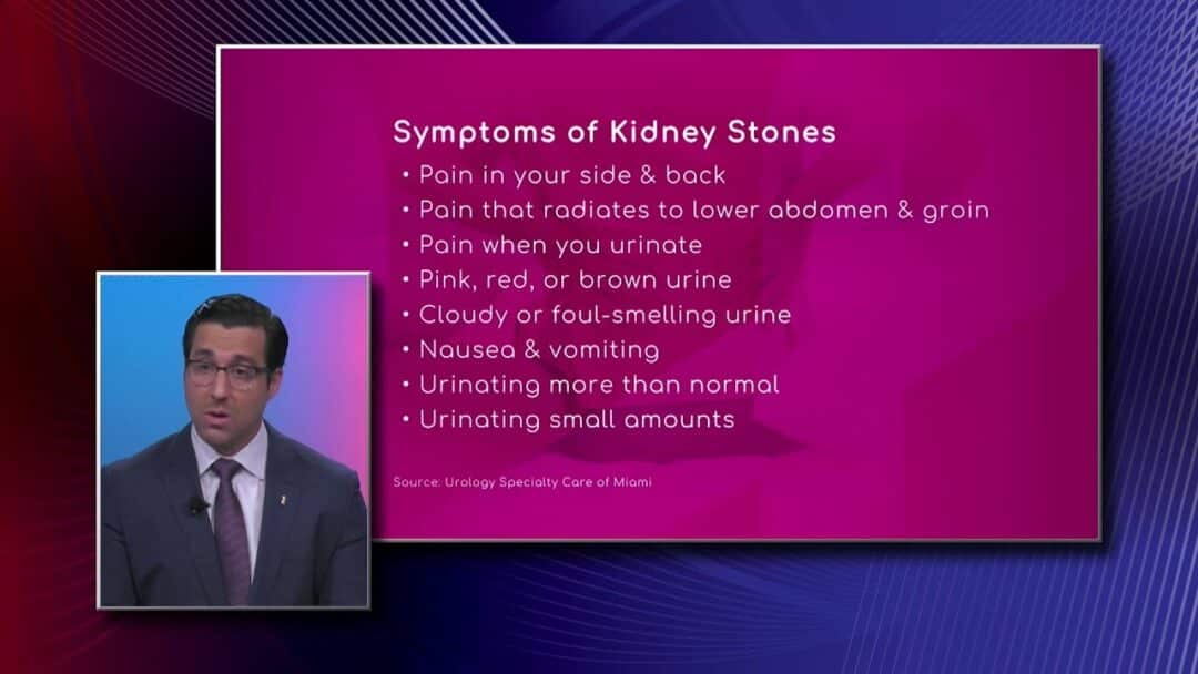 There are several symptoms of kidney stones: pain in side and back, pain that radiates to lower abdomen and grain, pain when urinating, pink, red or brown urine, cloudy or foul-smelling urine, nausea and vomiting, urination more than normal and urinating small amounts. Dr. Daniel Martinez, Urologist with Baptist Health South Florida, explains in male […]
